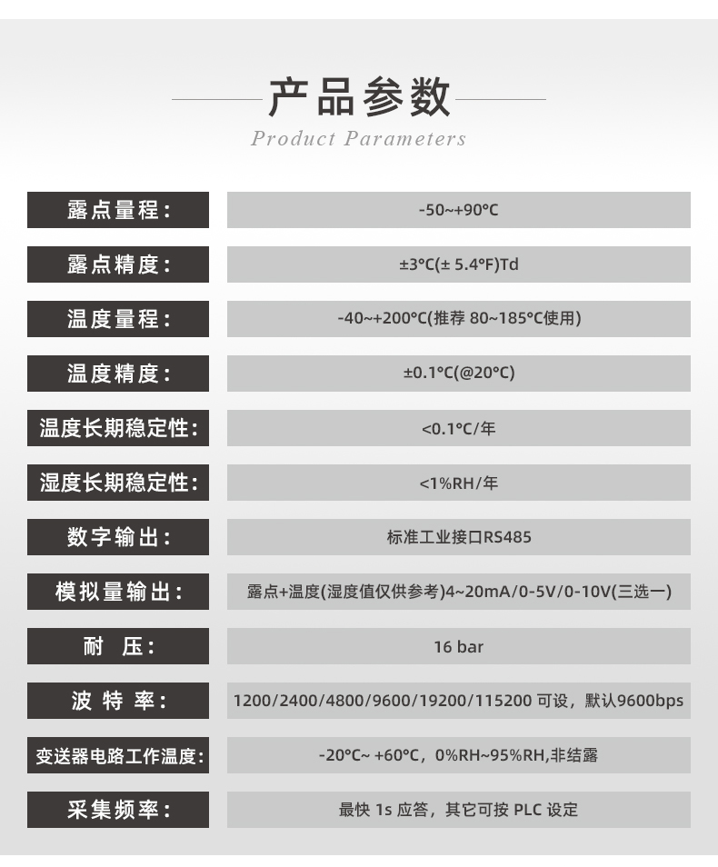 ●露點(diǎn)量程:?-20~+100°C