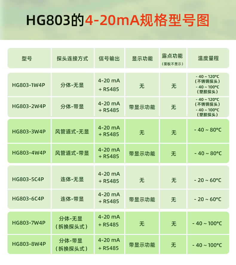 HG803溫濕度變送器類型