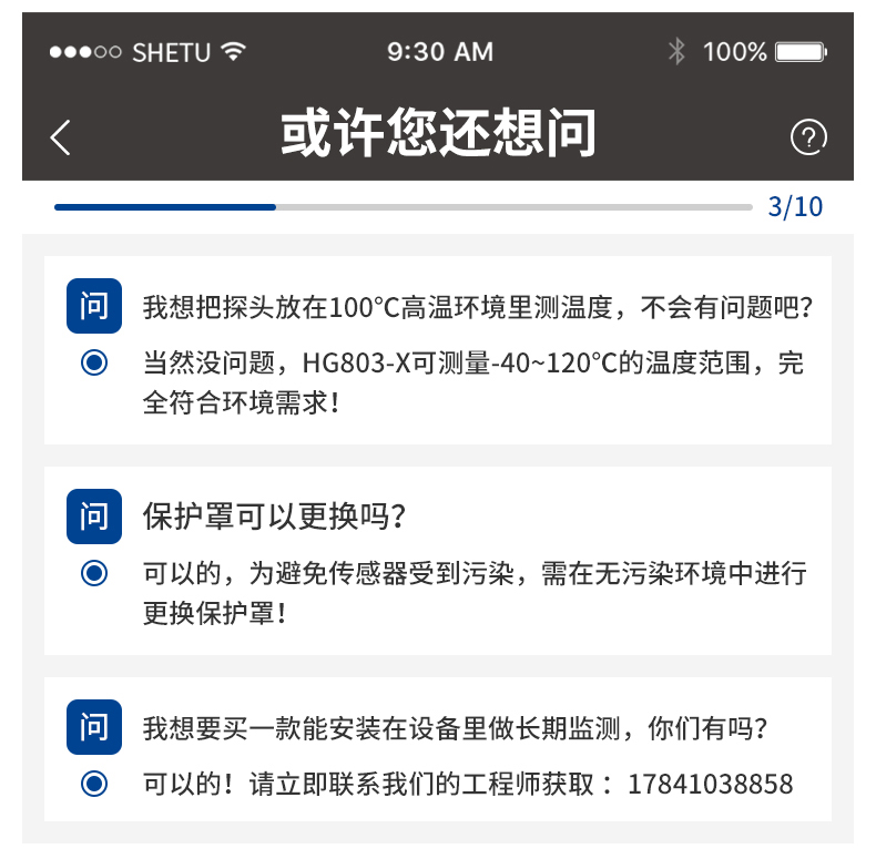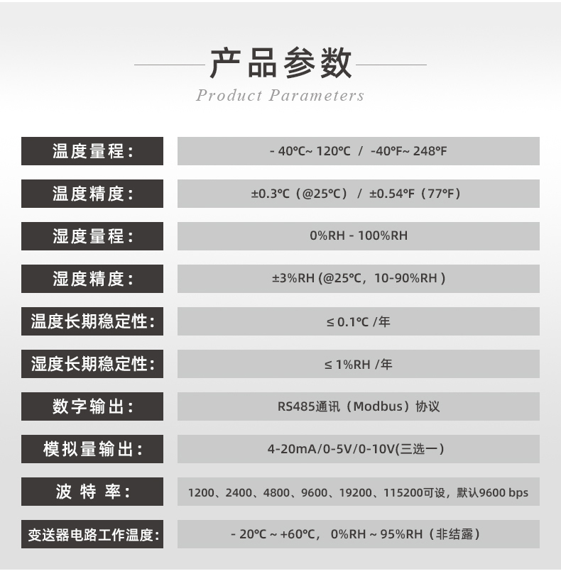 ●數(shù)字信號輸出型,溫度默認(rèn)攝氏度℃單位,也可選擇定制華氏度℉單位