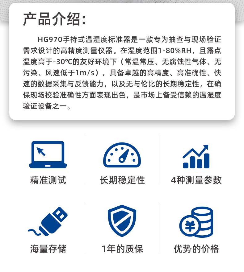 HG970手持式溫濕度標(biāo)準(zhǔn)器是一款專為抽查與現(xiàn)場驗(yàn)證需求設(shè)計(jì)的高精度測量儀器。在濕度范圍1-80%RH,且露點(diǎn)溫度高于-30°C的友好環(huán)境下(常溫常壓、無腐蝕性氣體、無污染、風(fēng)速低于1m/s),具備卓越的高精度、高準(zhǔn)確性、快速的數(shù)據(jù)采集與反饋能力,以及無與倫比的長期穩(wěn)定性,在確?,F(xiàn)場校驗(yàn)準(zhǔn)確性方面表現(xiàn)出色,是市場上備受信賴的溫濕度驗(yàn)證設(shè)備之一。